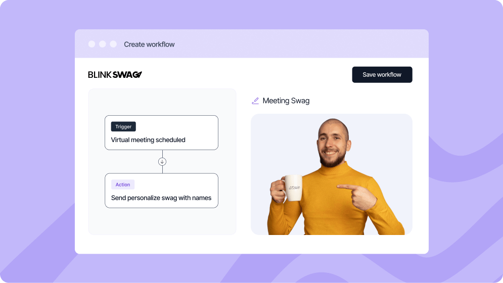 Your swag, gifts, and recognition on autopilot. BlinkSwag Automations deliver the right gift, to the right person, at the right time—no coding needed.